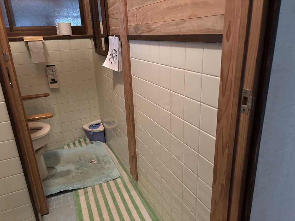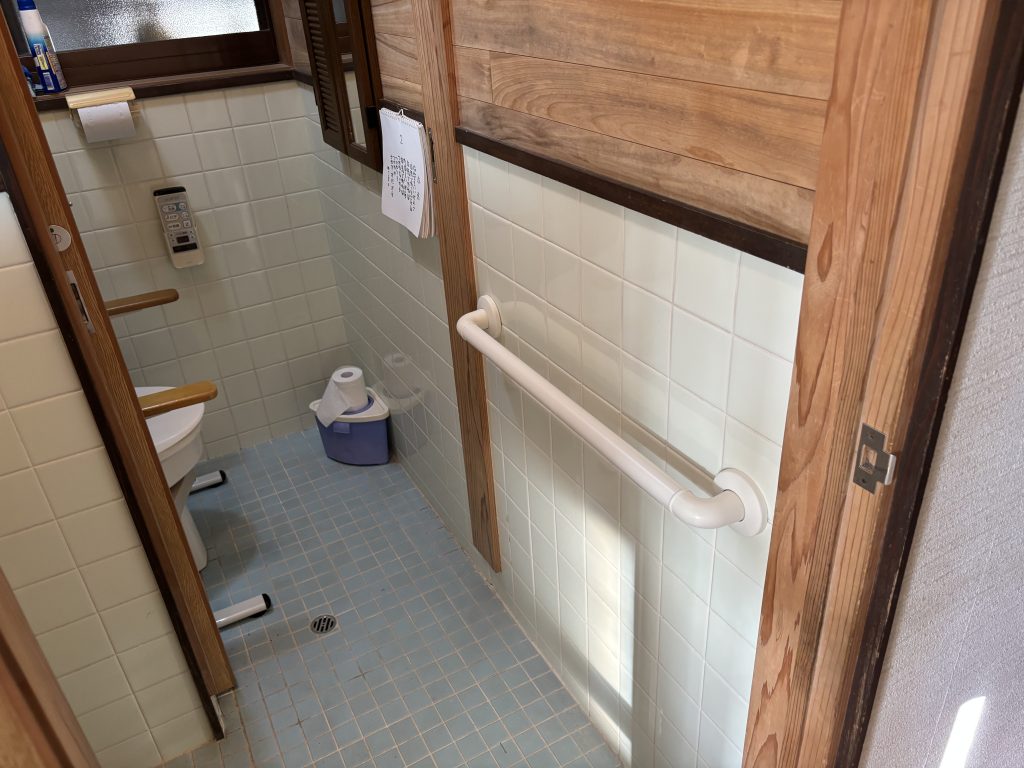トイレ入口から洋式トイレまでの動線に住宅改修工事の手すりを取付し移動の安定性を高めました。