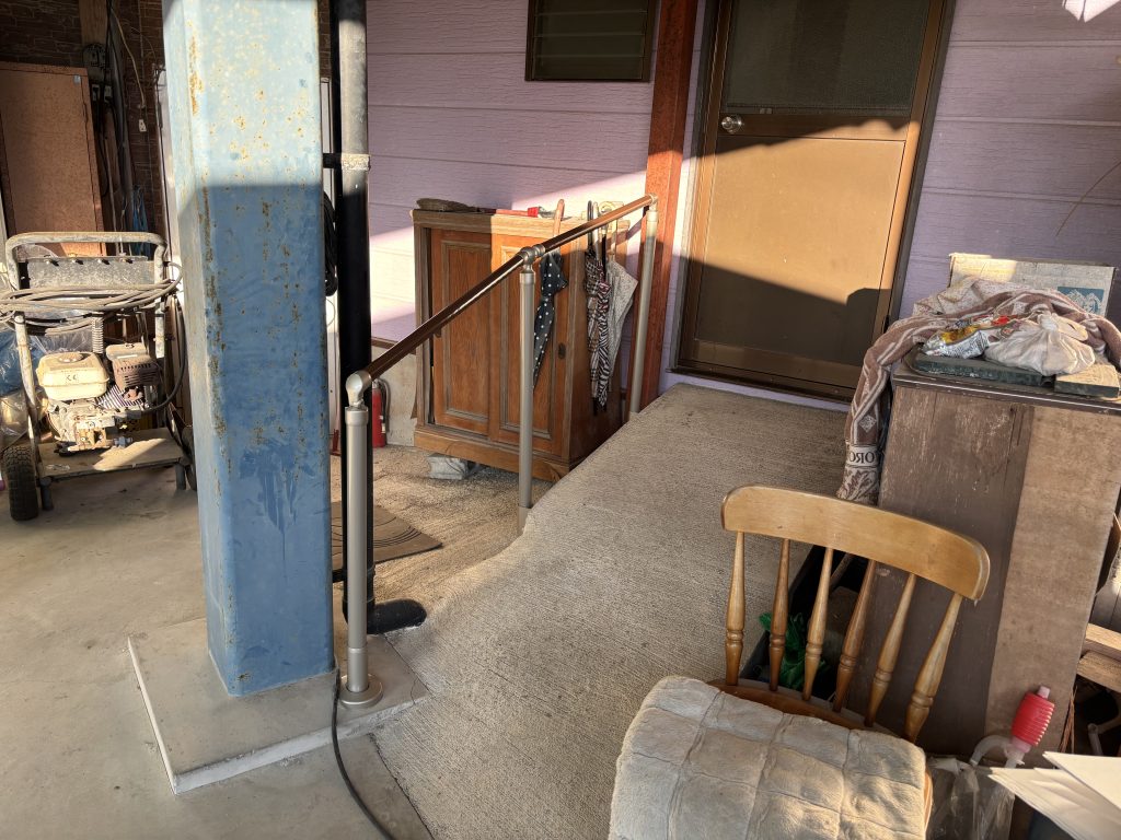 外出は勝手口から出入りをしますが勝手口入口部分からスロープ状にアプローチが作れらていましたが身体を支える手すりがなく段差から転落する危険性もありました。