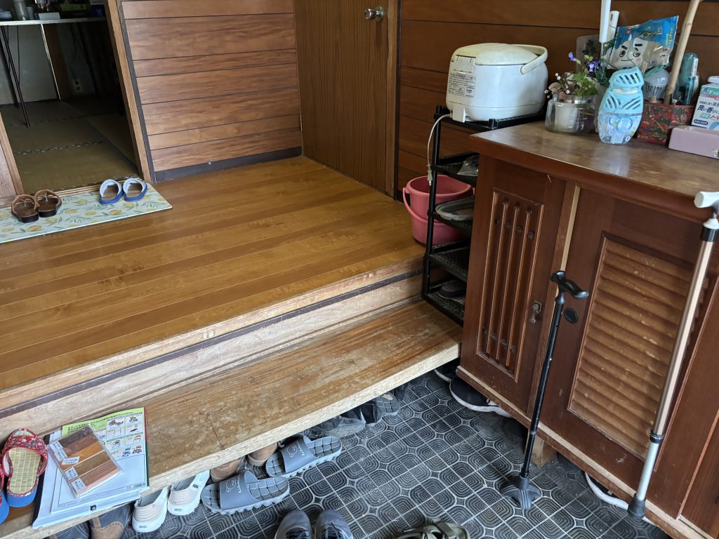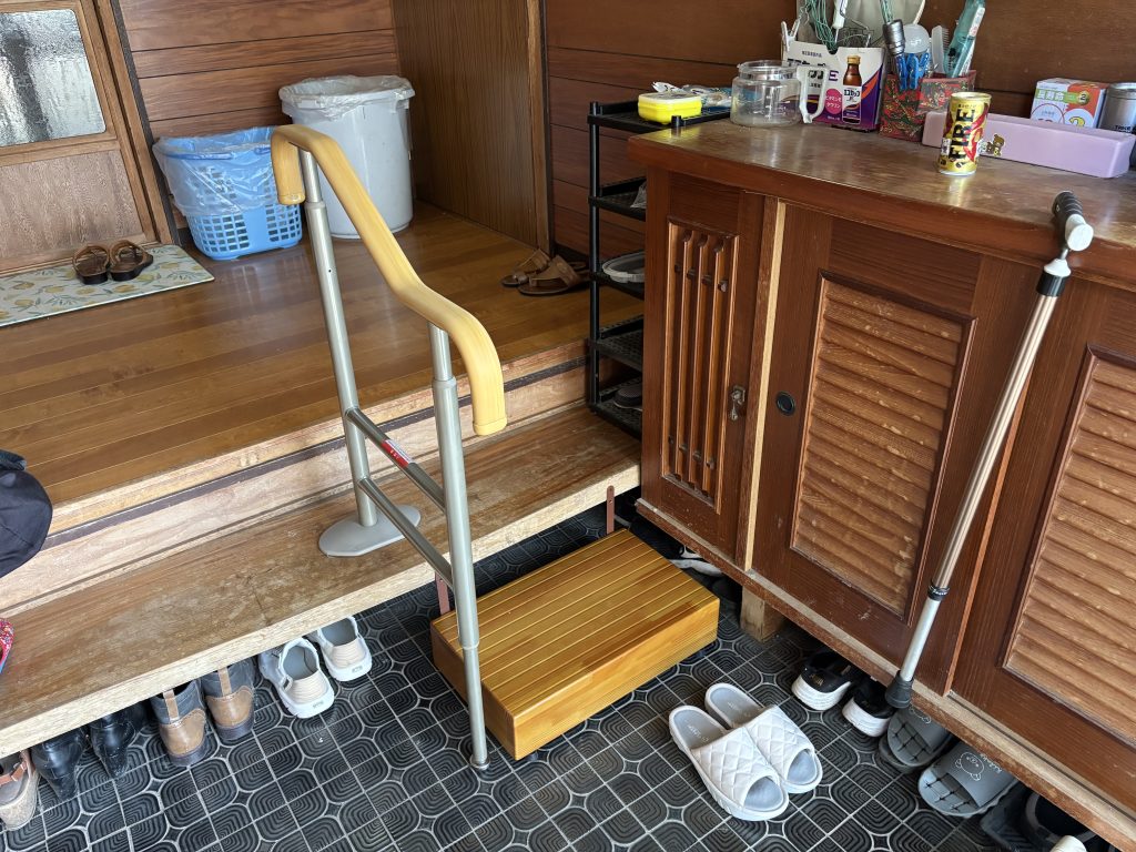 外出は玄関より出入りされます。段差を昇降する際には靴棚を支えにして外出されますが。